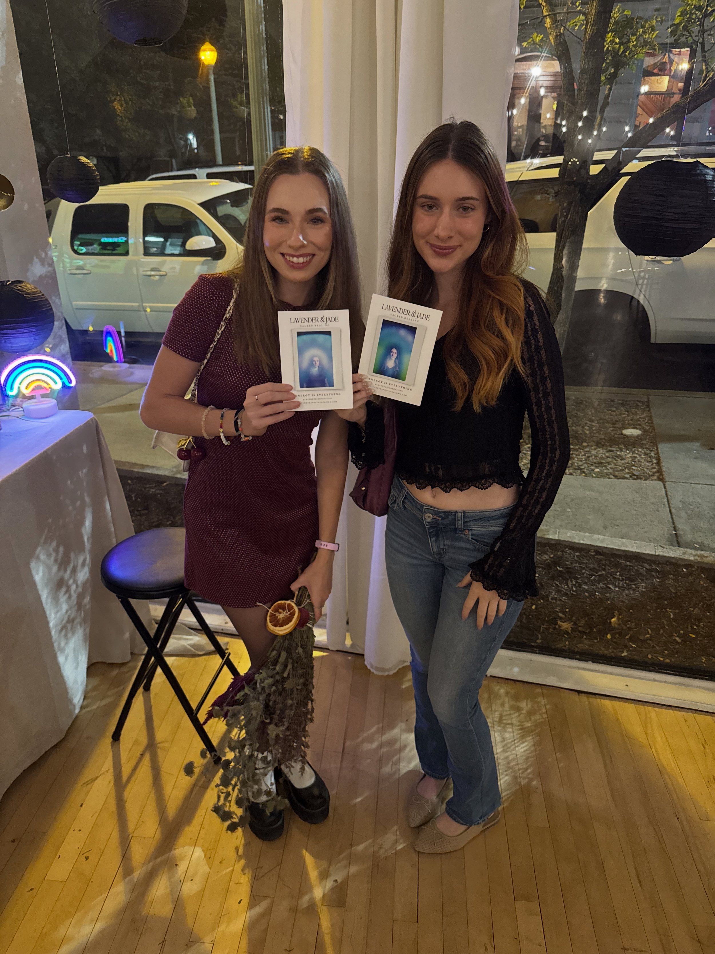 But if you like to “nerd out” like we do here’s the full scoop: Lavender and Jade operates a specialized camera, originated in the 1970’s, which utilizes biofeedback hand sensors that measure different data points in the body. This information is fed into the camera’s algorithm which translates your body’s unique signals into specific colors on polaroid film through a double exposure. These colors, shapes, and patterns offer insight into your energy in the present moment.
